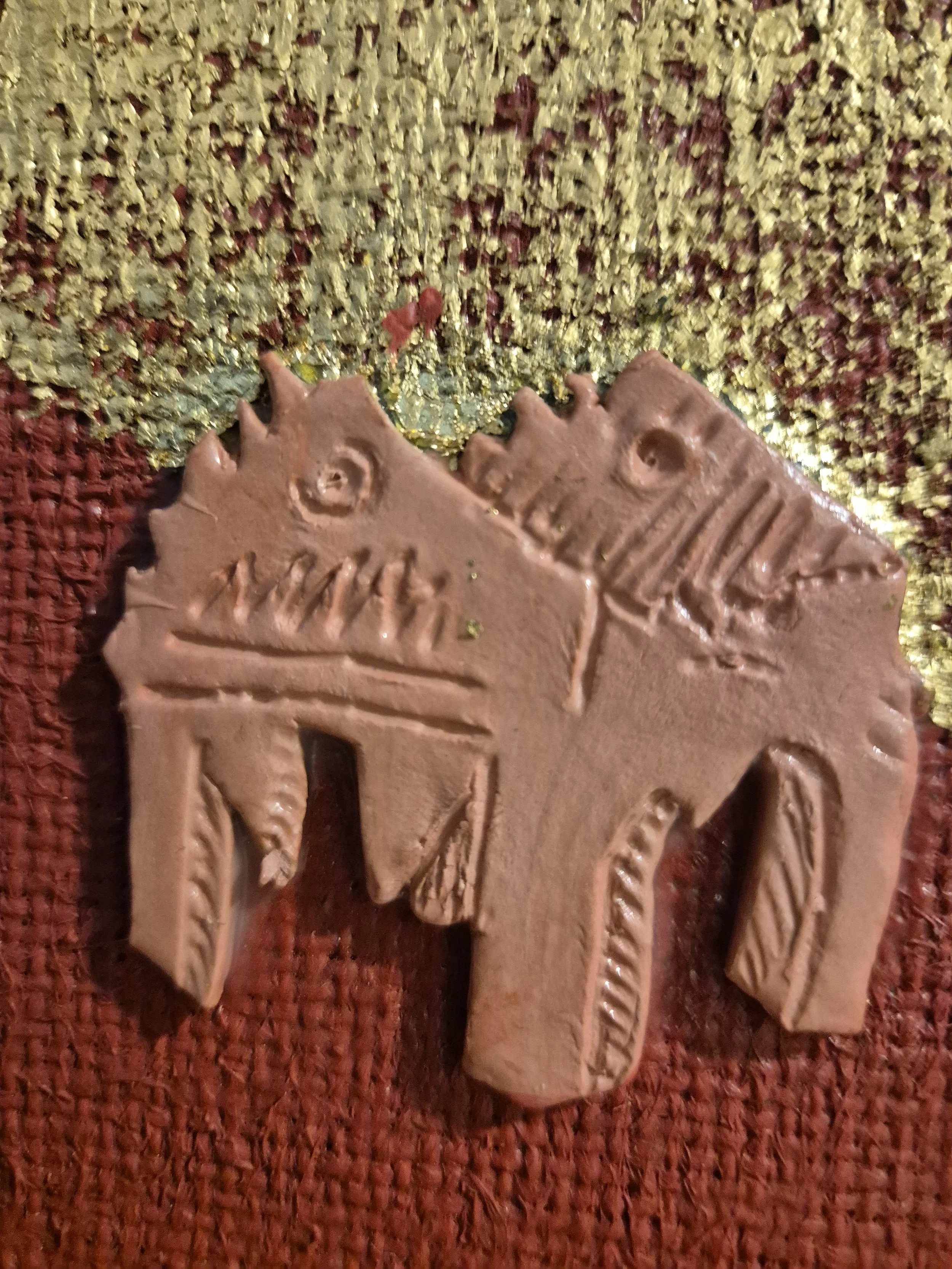 • A textile ornament, reimagined in painted clay, remembers the hands of Macedonian women, preserving heritage through woven ritual.